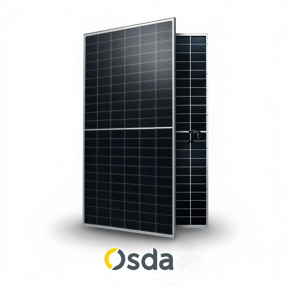 در نیروگاههای بزرگ، پنل خورشیدی 590 وات بایفشیال (OSDA) به دلیل راندمان بالا و هزینه پایینتر هر وات، انتخابی اقتصادی است.